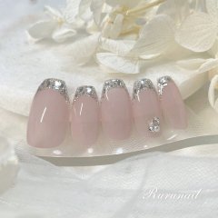ガラスフレンチとストーン上品ネイルチップ(287)