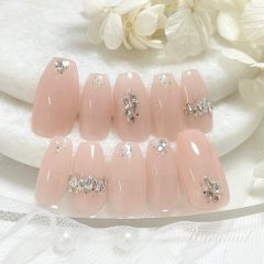 なじみ落ち着きピンクとキラキラストーンネイルチップ(151